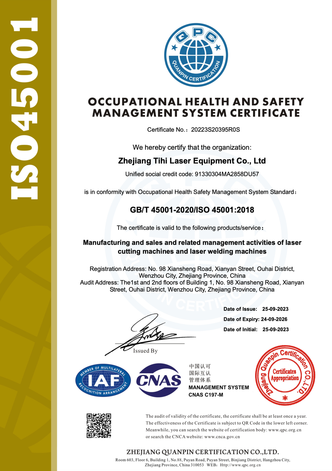 OHSAS18001:2007职业健康安全管理体系认证